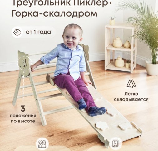 Размер треугольника 66*62*57 см, размер горки Пиклер 90*33 см.