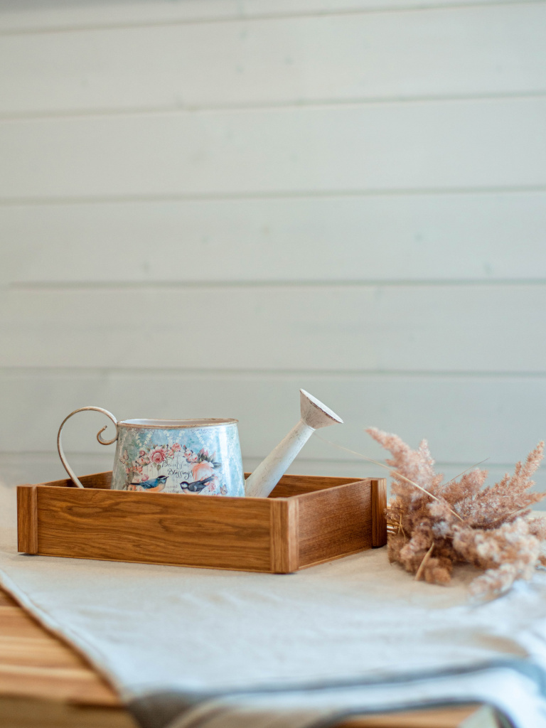 Коробку можно использовать не только для упаковки подарка, но и как деревянную посуду для хранения конфет или печенья, а также при создании цветочных композиций. После масляной пропитки коробку легко использовать в ванной комнате или бане для хранения масел, косметики.