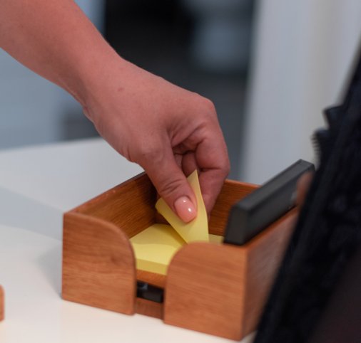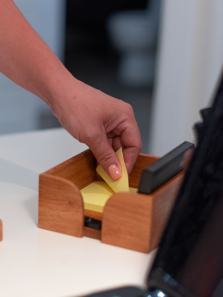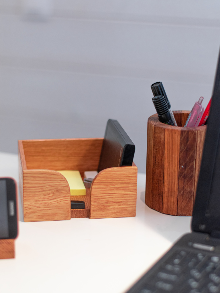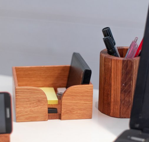 Может использоваться в качестве подставки под канцелярские принадлежности.