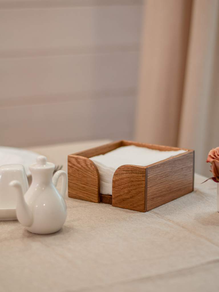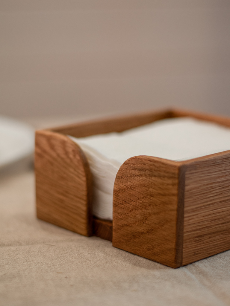 Салфетница под стандартный размер бумажных салфеток 125 мм. Материал: дуб.