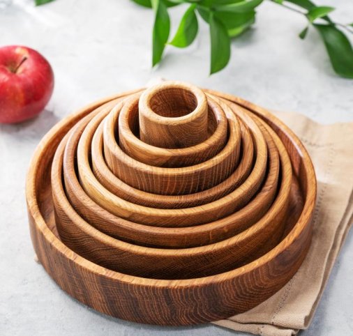 Тарелка из массива дуба для подачи основных блюд и салатов. Цвет натуральный, рисунок у каждой тарелки неповторим и является уникальным.