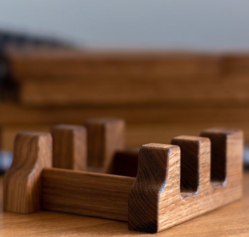 - Подставка под разделочные доски гармонирует с их дизайном, повторяя плавные линии. Она сделана очень изящно, вручную мастером.