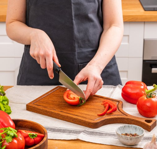 - Толщина доски более 20 мм достаточна для выполнения любой задачи по нарезке продуктов. Она достаточно тяжелая и не скользит по поверхности стола.