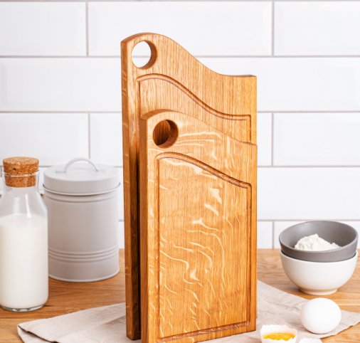 Изумительный набор разделочных досок из массива дуба, состоящий из 2 досок размером 40*19 и 30*16 см.