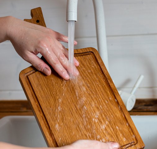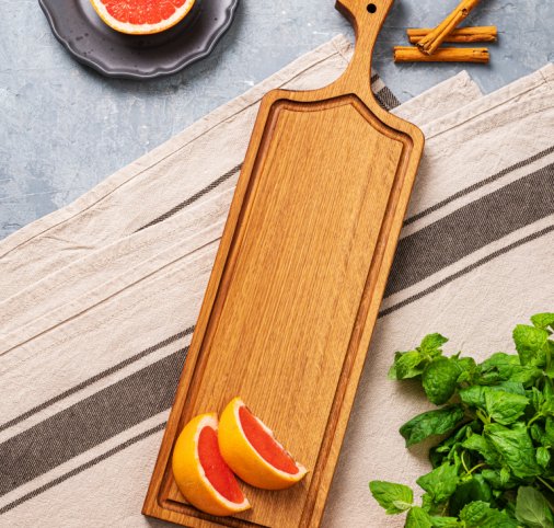 - Толщина доски более 20 мм достаточна для выполнения любой задачи по нарезке продуктов. Она достаточно тяжелая и не скользит по поверхности стола.