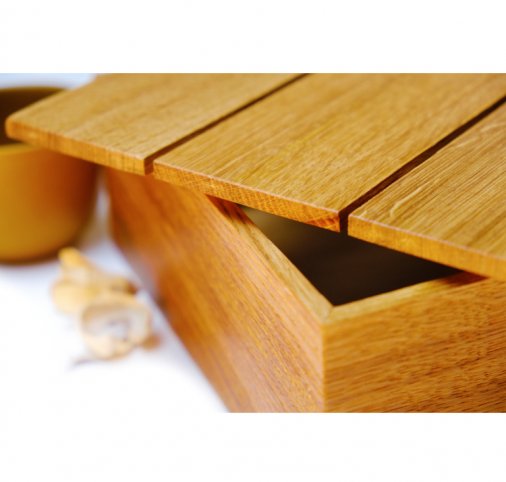 Обработана маслом, которое разрешено при хранении пищевых продуктов. Поэтому коробку можно использовать не только для упаковки подарка, но и как деревянную посуду для хранения конфет или печенья. Благодаря масляной пропитке коробку легко использовать в ванной комнате или бане для хранения масел, косметики.