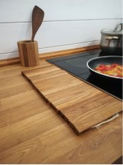 Незаменима вдоль плиты, ведь на неё можно легко поставить 2-3 горячие кастрюли или сковородки. Оригинальная форма деталей позволяет использовать её с 2 сторон. Обработана маслом.