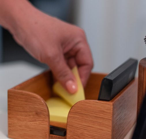 Может использоваться в качестве подставки под канцелярские принадлежности.